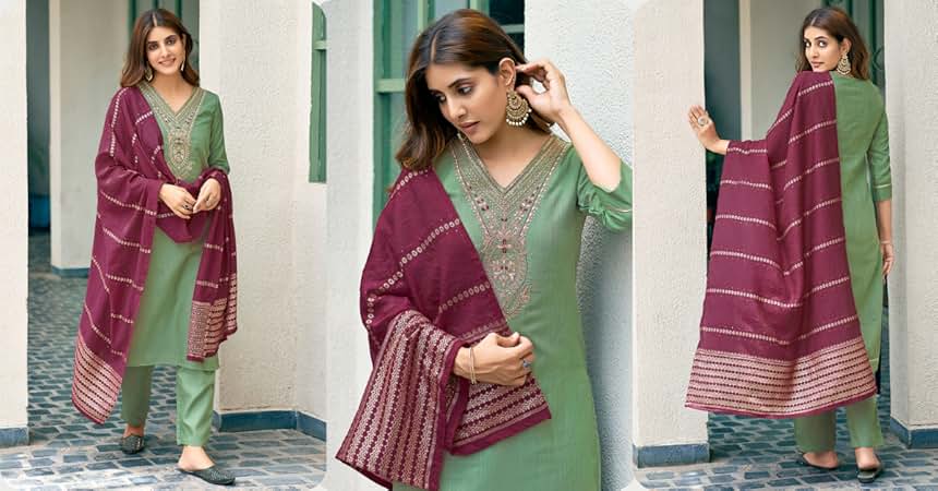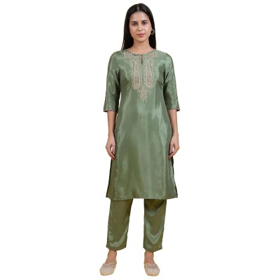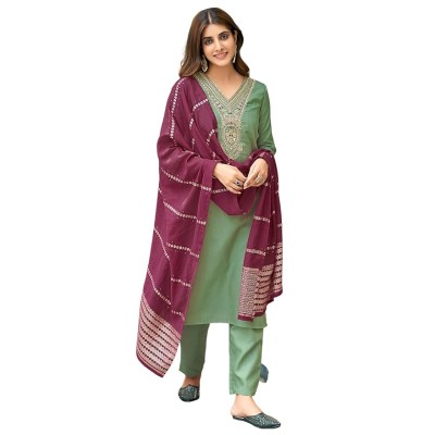 Women's Cotton Blend Sequence Embroidery Work Straight Kurta with Pant and Dupatta Set