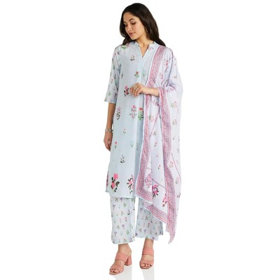 Women's Cotton Blend Mughal Print Kurta Pant Set with Dupatta