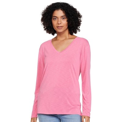 Women's Solid Modal Blend V-Neck Regular Fit Long Sleeve