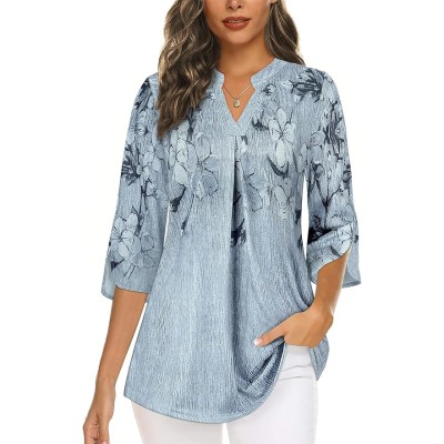 Womens V Neck Tops 3/4 Sleeve