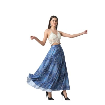 Every festival and every wedding in India is rejoiced by women wearing their dream lehenga. Our silky lehengas are made using a very soft polyester fabric with a beautiful shine. Our lehengas are lined with an equally soft crepe; hence, the skirt falls and swirls perfectly with every wearer's move. The waist has a nada to adjust your waist and the skirt edges are laced with a fine golden lama fabric which enhances the entire lehenga and gives it a very festive look.